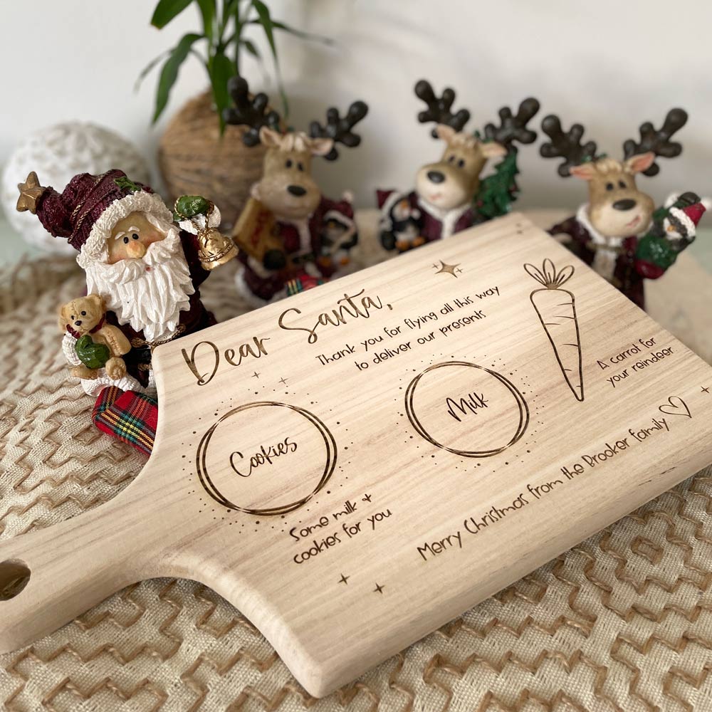 Make sure Santa has something yummy to snack on this Christmas! Our Santa tray is perfect for keeping his cookies and milk safe and sound on Christmas Eve!