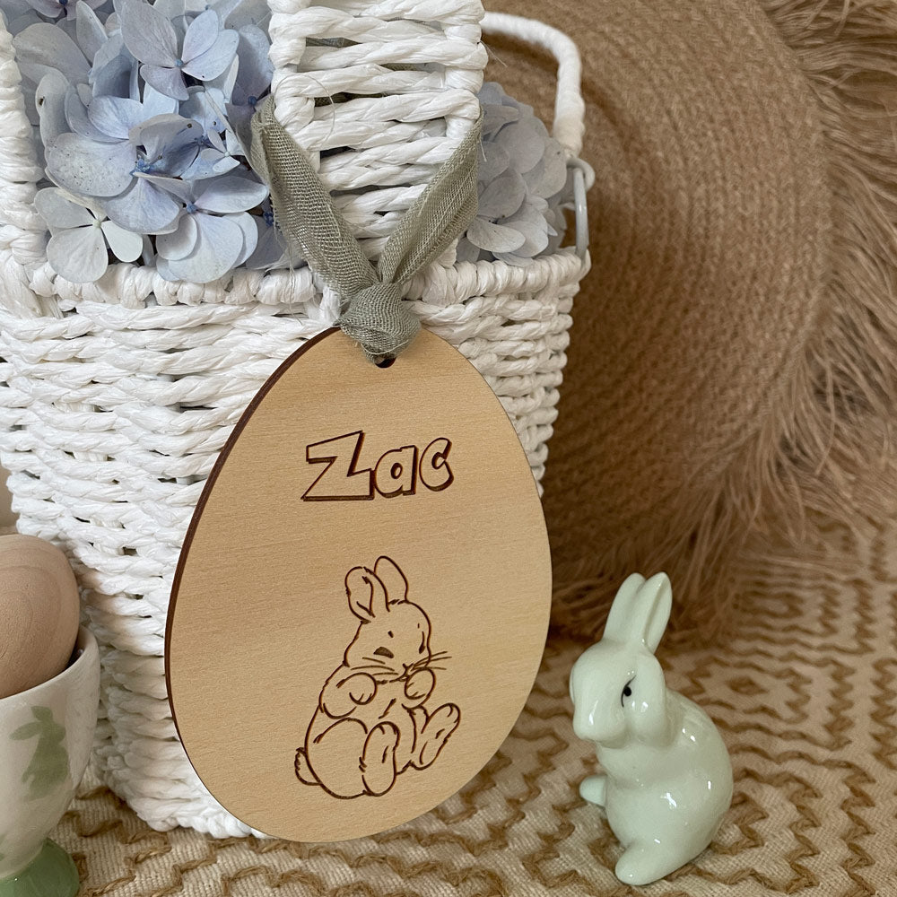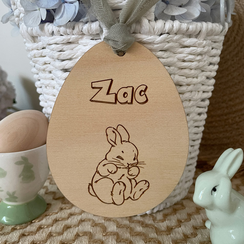EASTER EGG SHAPED TAG WITH EASTER BUNNY SITTING