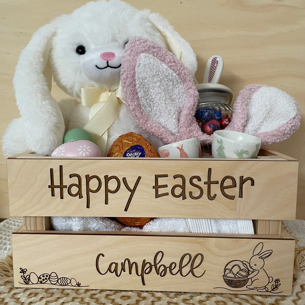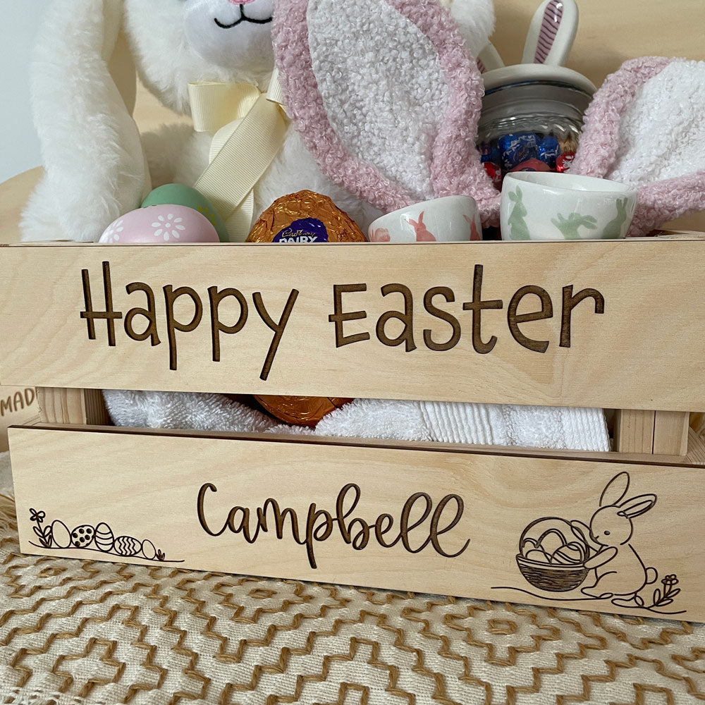 PERSONALISED WOODEN EASTER CRATE - BUNNY WITH EASTER EGG BASKET