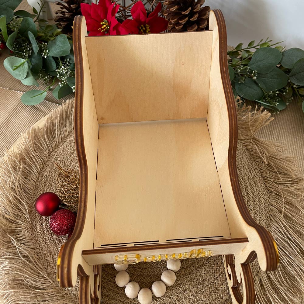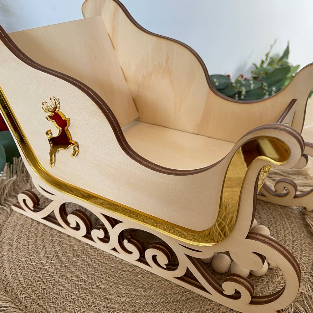 Experience the luxury of Santa's sleigh, a personalised santa sleigh crafted with quality at the forefront. Adorned with ornate features, it's a timeless gift to give to someone special.