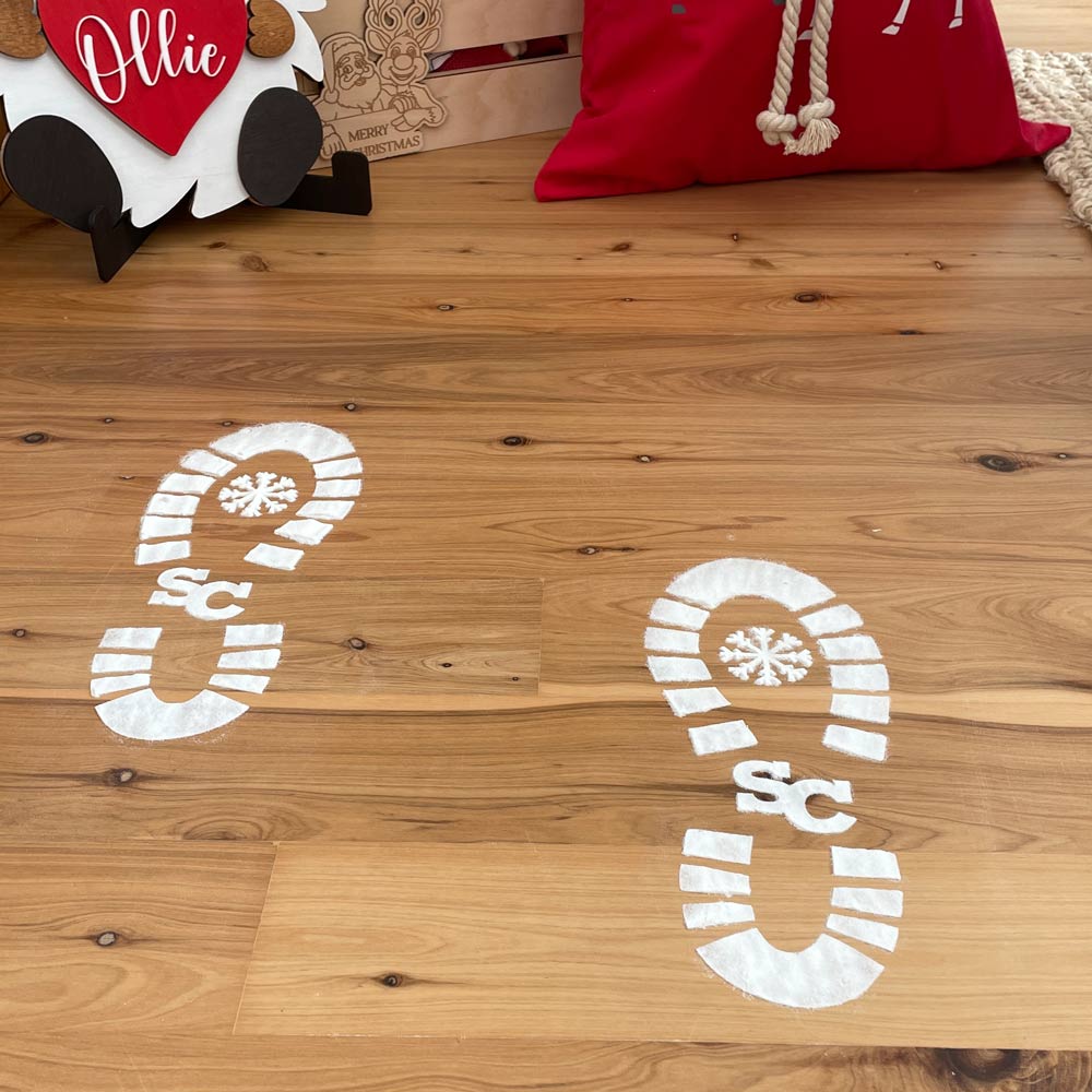 How are your flour sprinkling skills! See the faces on your little ones light up on Christmas morning when they see these life size Santa snow boot prints! They even have his initials.